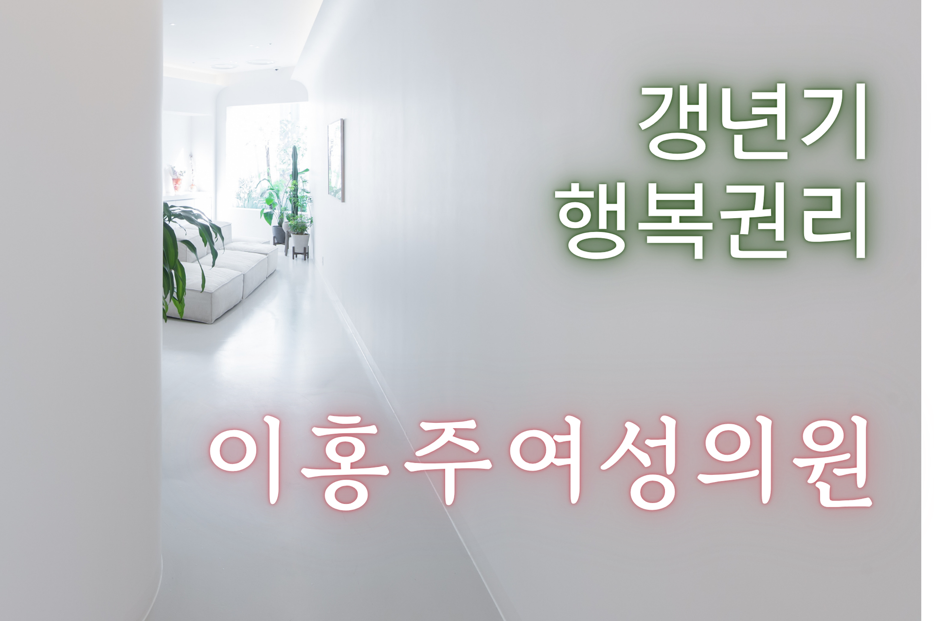 갱년기는 단순히 '여성의 끝'이 아닙니다. 새로운 인생을 위한 **'갱신(更新)'**의 시간입니다! 이홍주 여성의원 이홍주 원장님 (산부인과, 예방의학 전문의)과 그랜드비뇨의학과 황진철 원장님이 함께, 여성이라면 반드시 겪는 갱년기의 모든 것을 총 4편에 걸쳐 심층적으로 파헤쳤습니다. 막연한 두려움을 지식과 지혜로 바꿀 수 있는 명쾌한 강의를 만나보세요.